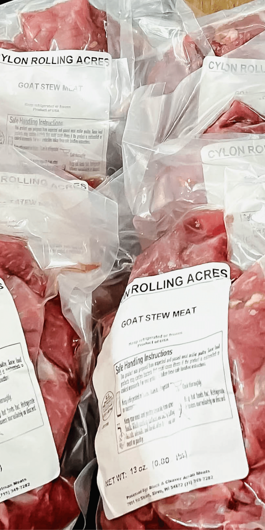 We're proud to raise Boer-Kiko cross meat goats using rotational grazing and regenerative farming practices on our farm in Northwestern Wisconsin. Our goat meat is harvested, cut and packaged in a USDA inspected facility so it's ready to be enjoyed with your family.